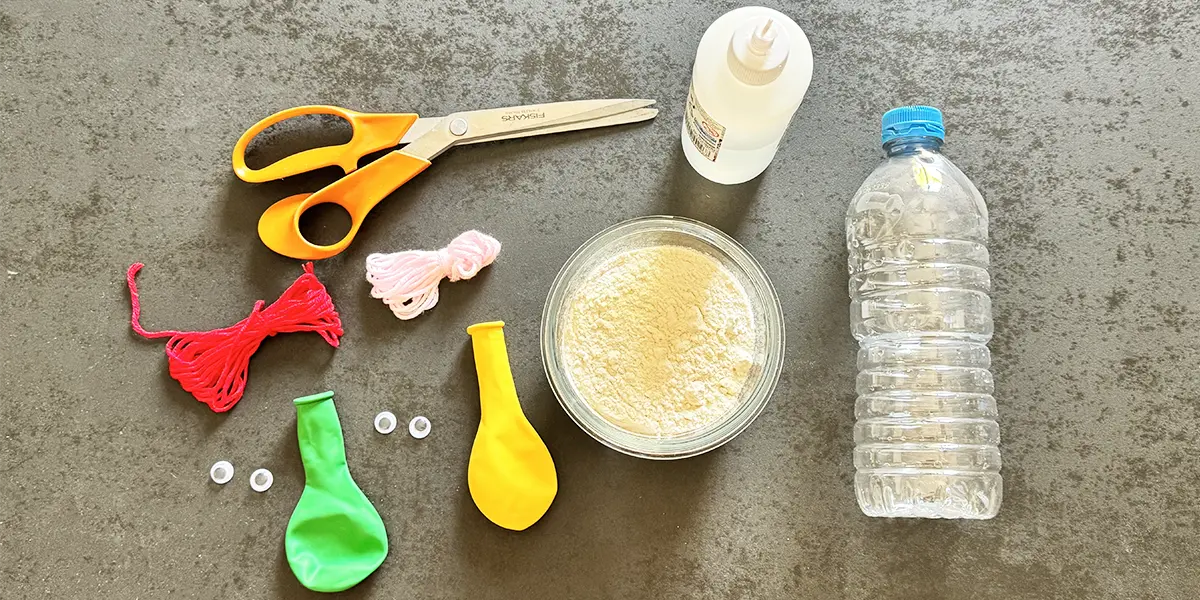 Escale junior Do it yourself Balle anti-stressmalaxe, ça relaxe ! MATÉRIEL 1 ballon gonflable épaisMaïzena ou farine2 yeuxLaine Petite bouteille plastique(50 cl à gros goulot)Colle, ciseaux1 marqueur noir Gonfle ton ballon plusieurs fois pour le rendre plus souple.Verse ta farine ou ta maïzena jusqu’à la moitié de la bouteille.Gonfle ton ballon mais pas trop et pince le bout pour que l’air ne s’échappe pas.Place l’ouverture du ballon sur le goulot de ta bouteille.Déverse le contenu de ta bouteille dans le bChasse bien l’air.Décore ta balle (yeux, cheveux pour cacher le nœud du ballon…).