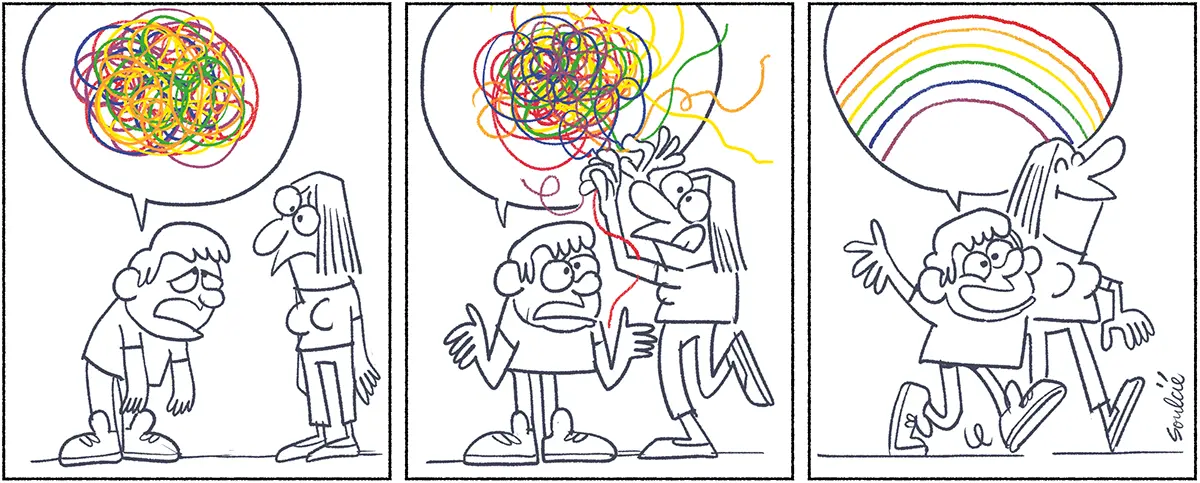 Oui, la souffrance psychologique concerne tout le monde. Nous vivons toutes et tous des moments de stress, d’anxiété, de dépréciation, de panique ou de désespoir. La plupart du temps, ces sentiments ne durent pas. Mais parfois, ils peuvent s’installer et devenir des problèmes plus sérieux. Quel que soit ton niveau de souffrance, il est important de ne pas hésiter à demander de l’aide lorsqu’on en ressent le besoin.