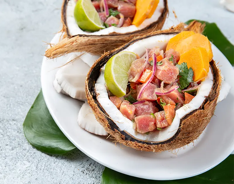 La cuisine polynésienne traditionnelle repose sur des produits bruts, locaux et peu transformés. Elle fait la part belle aux poissons crus, aux fruits exotiques, aux légumes racines et au lait de coco, des ingrédients à la fois savoureux et bénéfiques pour la santé.